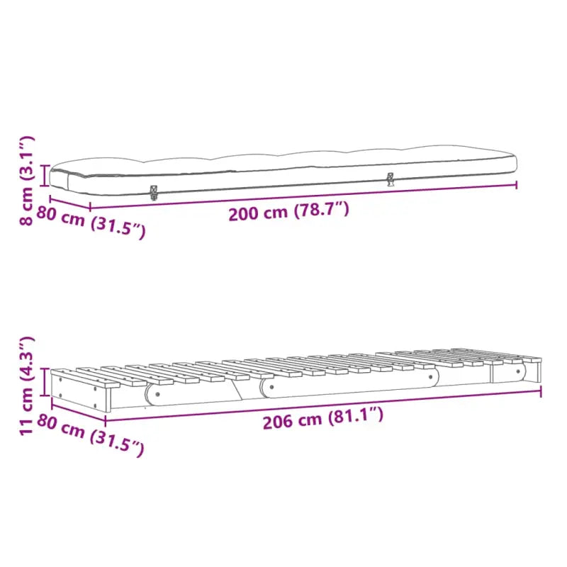 - Afmetingen: 80 x 200 x 8 cm (B x D x D)