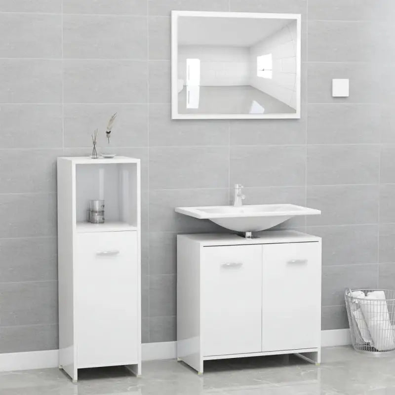 Deze 3-delige badkamermeubelset heeft veel opbergruimte en is een chique en tijdloze aanvulling op elke badkamer of wasruimte.