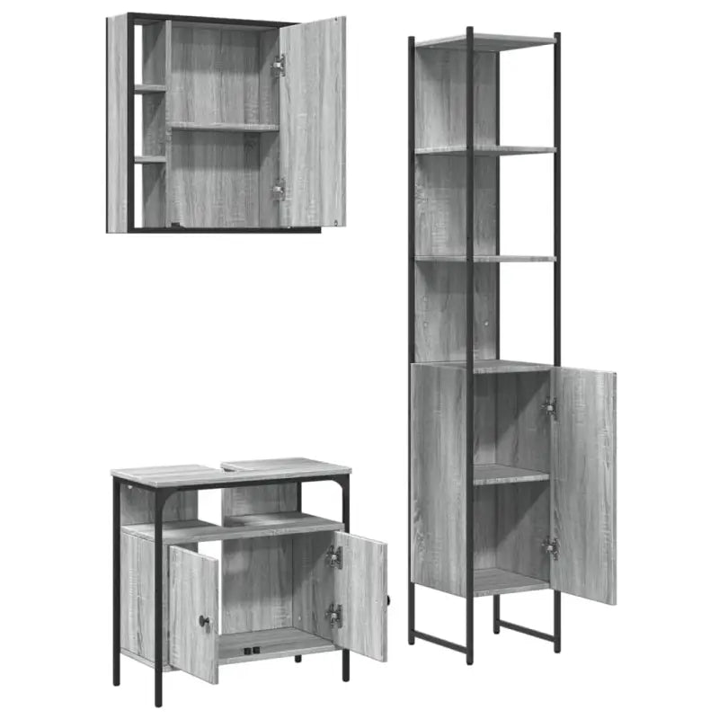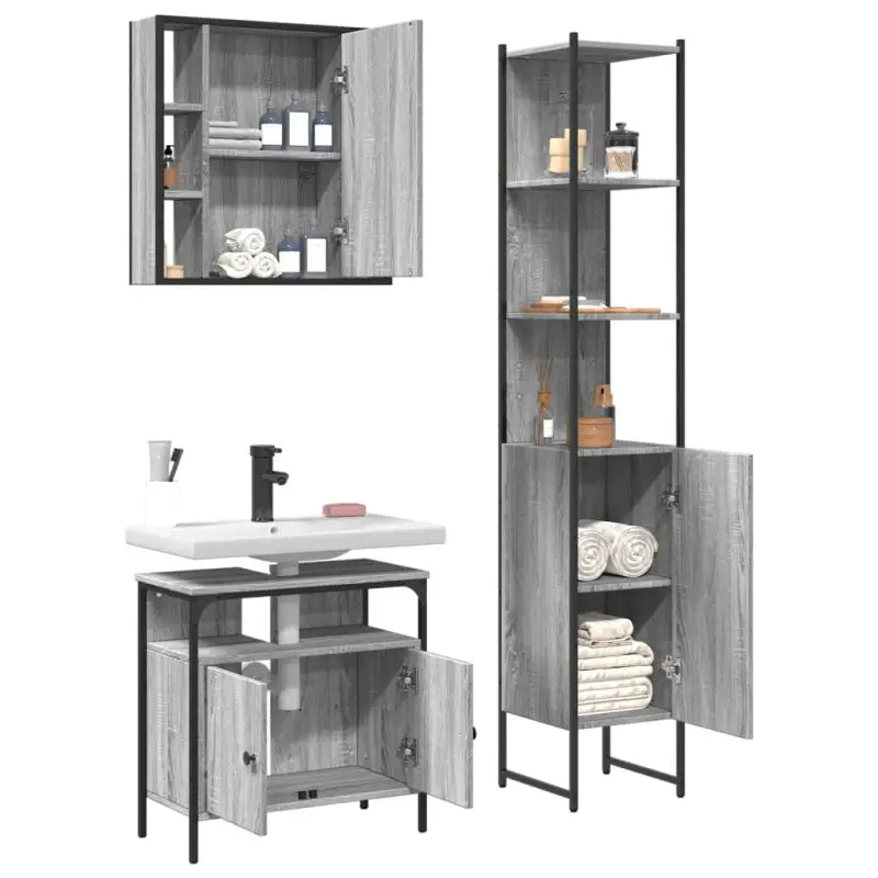 Badkamermeubelset met stevige constructie en verstelbare poten in grijs sonoma