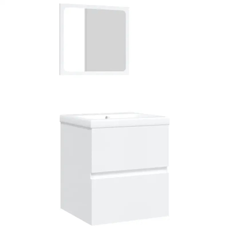 Wastafelkast met spiegel in wit materiaal en opvallende totale afmetingen