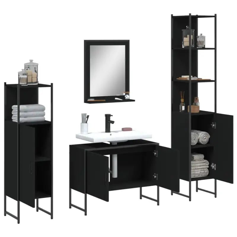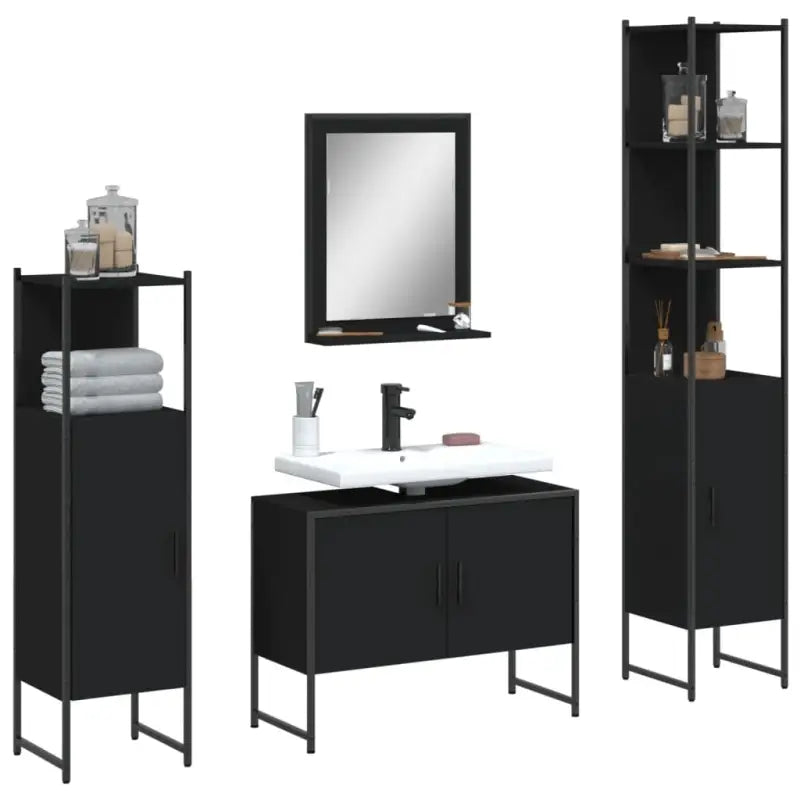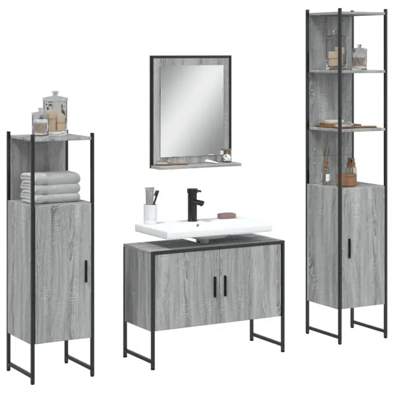 Deze aantrekkelijke badkamerkastenset biedt veel opbergruimte en heeft een trendy en toch praktisch ontwerp.
