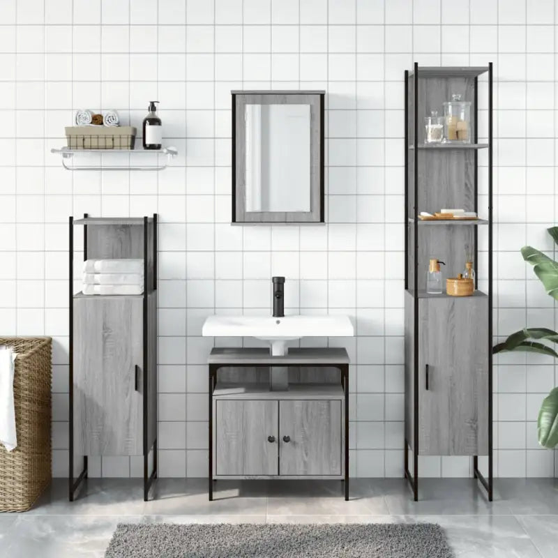Grijze Sonome badkamermeubelset muur gemonteerd van bewerkt hout