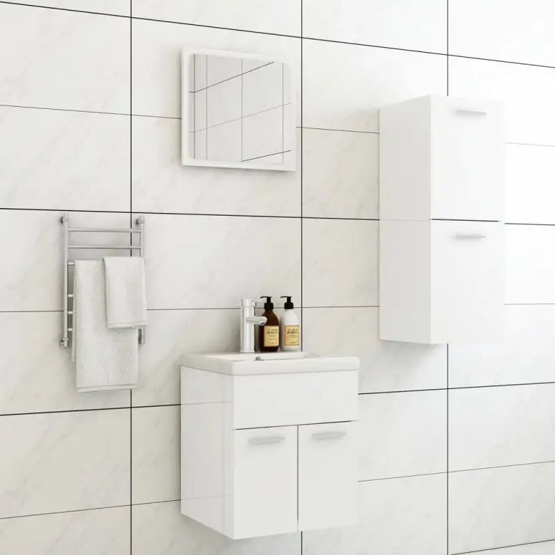 Met deze stijlvolle badkamermeubelset kan je extra opbergruimte in je badkamer creëren. Door de strakke lijnen en het strakke ontwerp past hij perfect in je badkamer.
