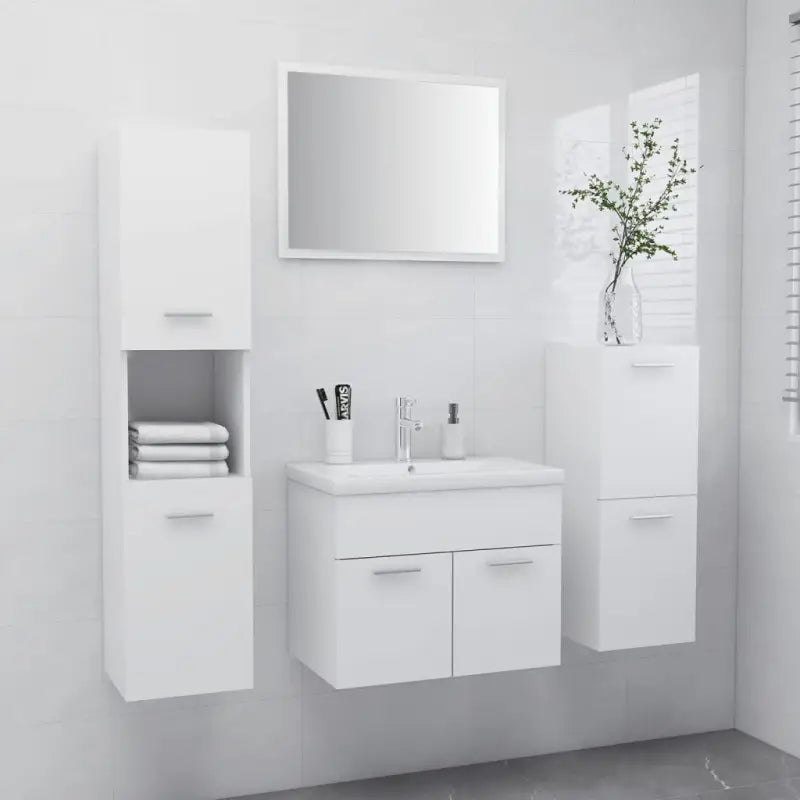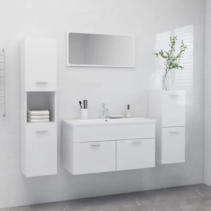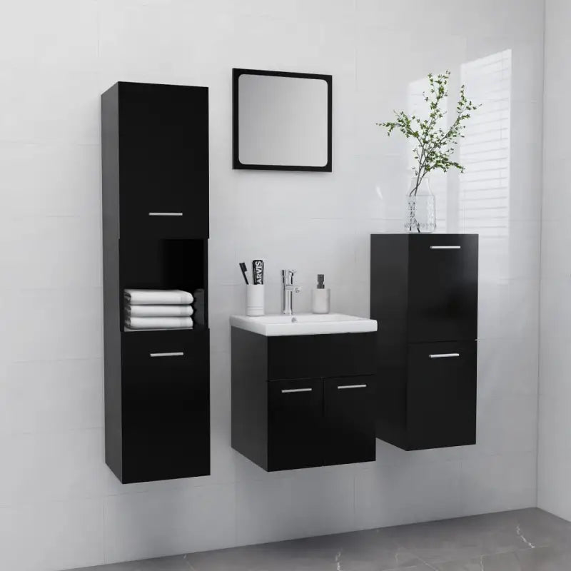 Met deze stijlvolle badkamermeubelset kan je extra opbergruimte in je badkamer creëren. Door de strakke lijnen en het strakke ontwerp past hij perfect in je badkamer.