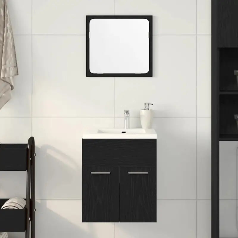 De meubelset, bestaande uit een spiegel en een kast, is gemaakt van duurzaam en stabiel bewerkt hout. Deze chique kast is voorzien van 1 vak en 2 deuren en biedt voldoende opbergruimte om spullen in je badkamer op te bergen. Het blad van het kastje is ideaal om een wasbak te plaatsen. De spiegel geeft je interieur een prachtige uitstraling. Deze badkamerset is gemakkelijk schoon te maken met een vochtige doek.