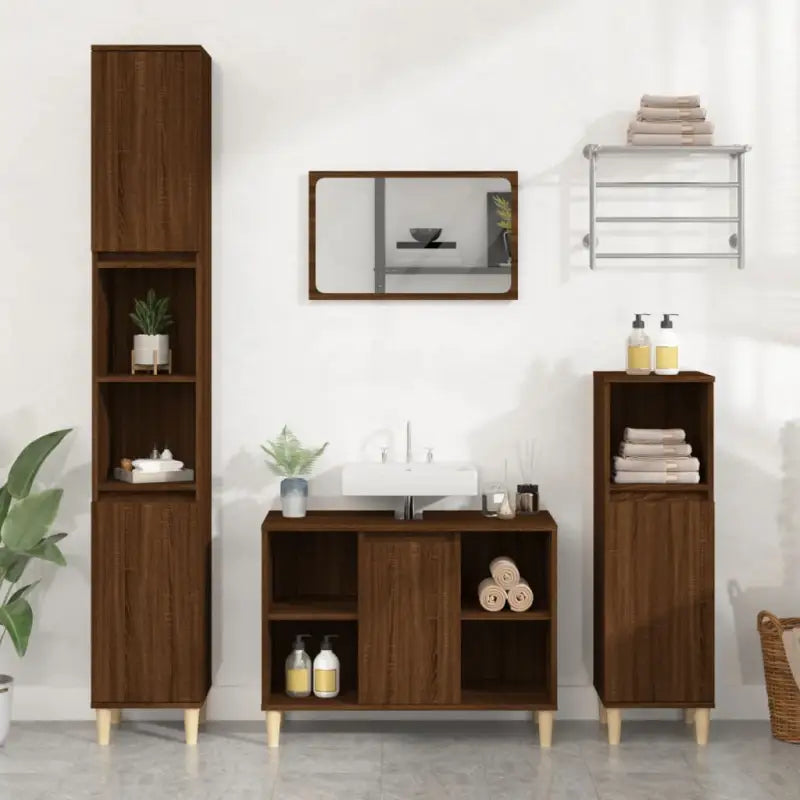 Stijlvolle badmeubelset met massief eucalyptushout en grote opbergruimte