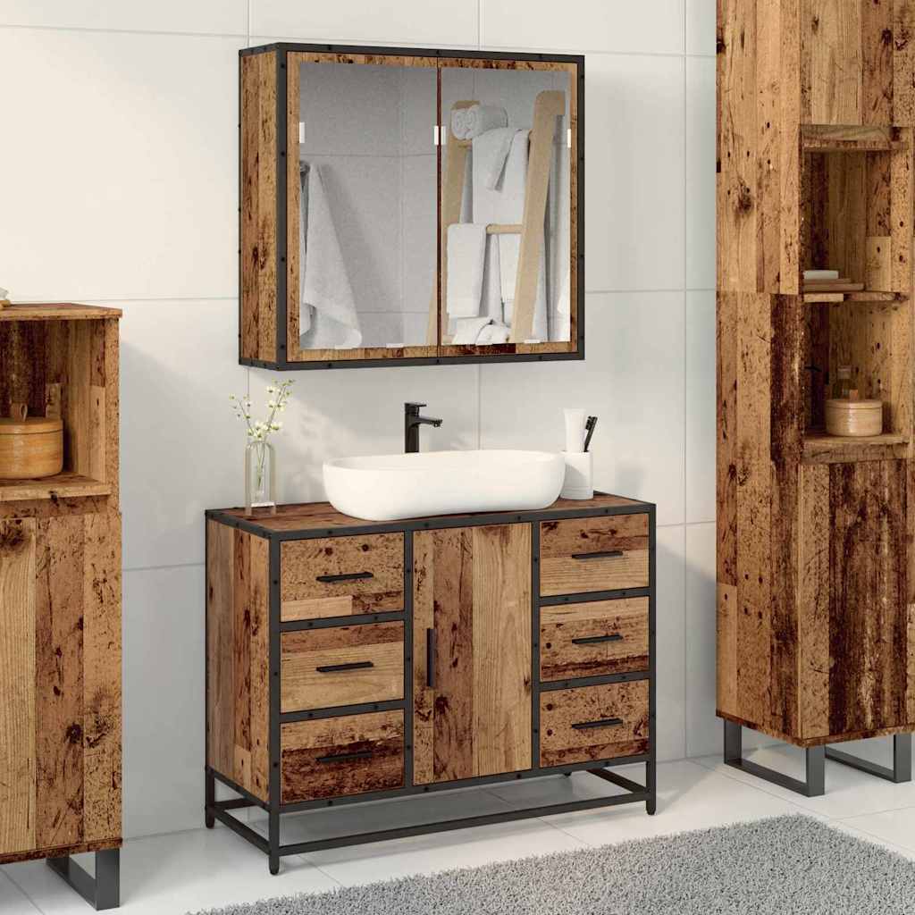 vidaXL 2-delige Badkamermeubelset bewerkt hout bruin eikenkleur