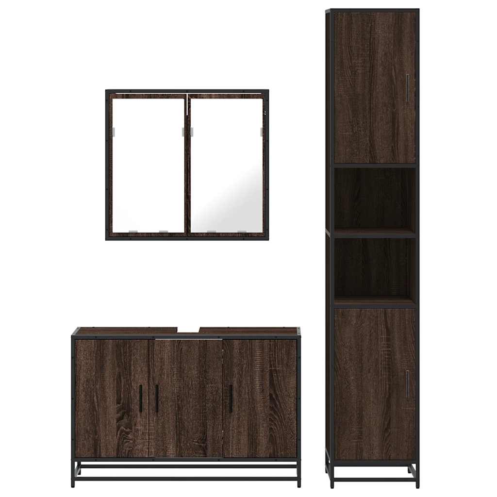 vidaXL 3-delige Badkamermeubelset bewerkt hout gerookt eikenkleurig