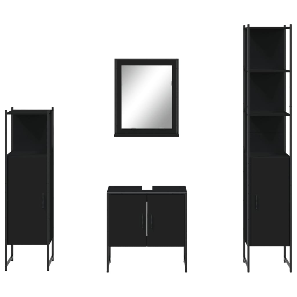 vidaXL 4-delige Badkamermeubelset bewerkt hout zwart