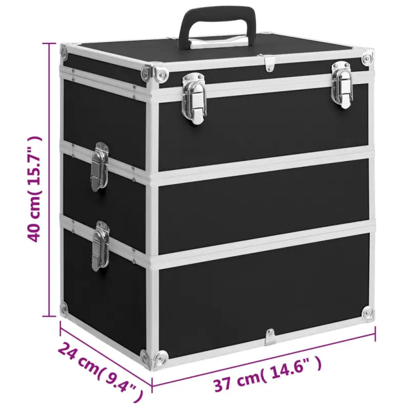 De make-up koffer is gemaakt van ABS-folie en aluminium. Hij bewaart je cosmetica op een ideale manier en houdt alles in perfecte staat. De koffer heeft 3 afneembare lagen waardoor er voldoende opbergruimte is voor je cosmetica- en schoonheidsproducten. Hij heeft bovendien een draaghandvat waardoor je de koffer eenvoudig overal mee naartoe kan nemen!