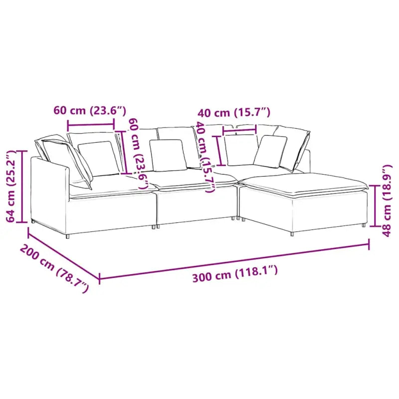 - Royale zitplaatsen: met vier modulaire secties biedt de bank voldoende zitruimte om comfortabel te loungen, waardoor hij ideaal is voor familiebijeenkomsten of het ontvangen van vrienden. Of het nu wordt gebruikt in een gezellige woonkamer of een open ruimte, het ruime ontwerp zorgt ervoor dat iedereen samen kan ontspannen.