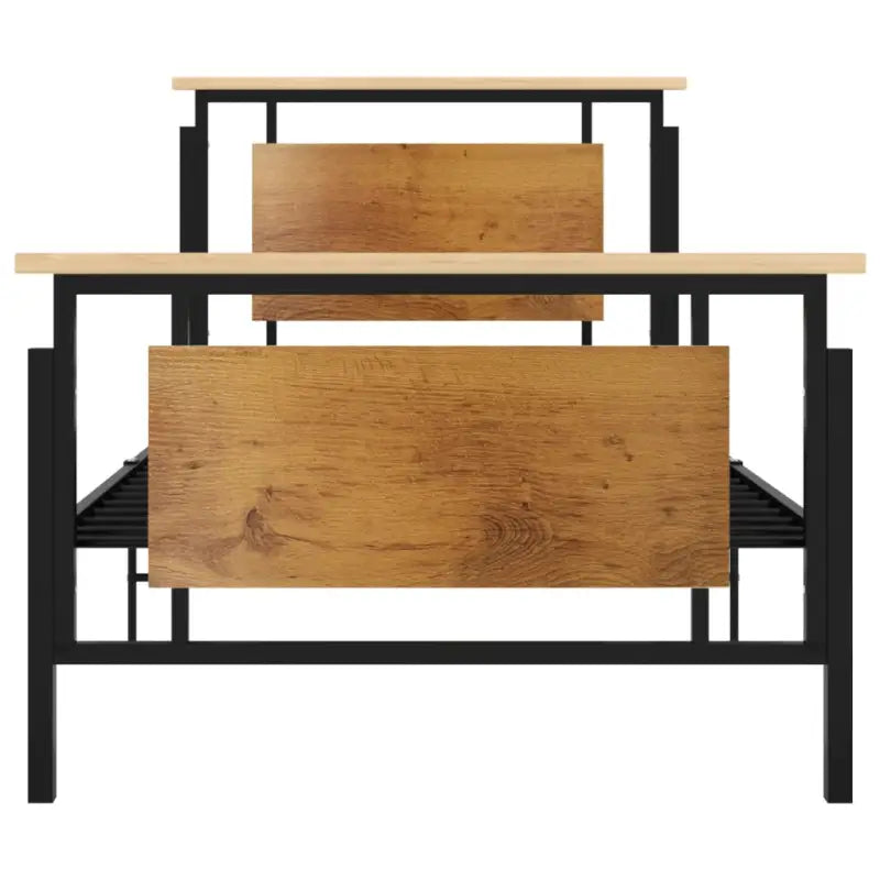 Bedframe van massief eikenhout en gepoedercoat metaal voor heerlijke nachtrust