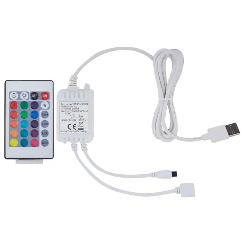 • Afstandsbediening met 24 knoppen voor het aanpassen van sterkte, helderheid en verschillende kleuren