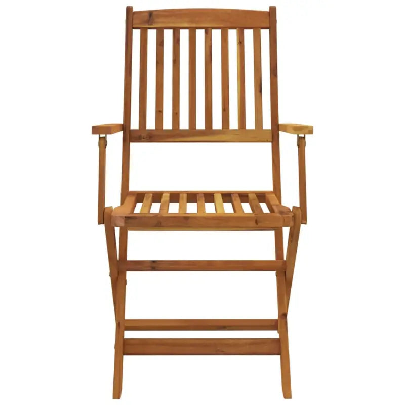 De eetset is gemaakt van hoogwaardig acaciahout, een tropisch hardhout, dat weerbestendig en duurzaam is. Dankzij de olieafwerking is het oppervlak makkelijk schoon te vegen met een vochtige doek. Het tafelblad heeft een gat in het midden om een parasol te plaatsen. De tafel en stoelen kunnen worden ingeklapt om ruimte te besparen wanneer ze in niet in gebruik zijn. De tuinset is eenvoudig te monteren.