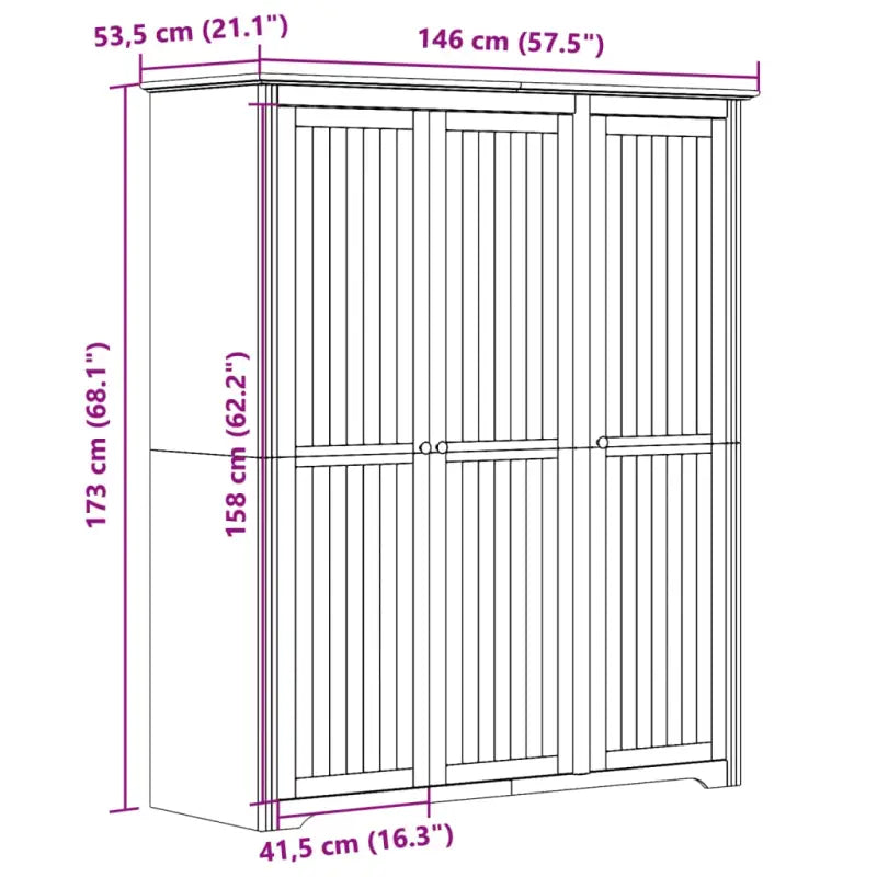 • Afmetingen: 146 x 53,5 x 173 cm (B x D x H)