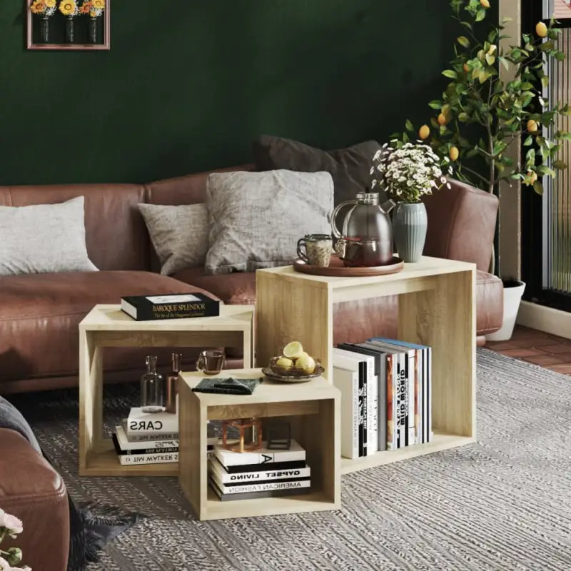Deze multifunctionele bijzettafelset is de perfecte oplossing voor in kleine appartementen of kamers met beperkte ruimte. Het moderne ontwerp maakt deze set een chique aanvulling op je woonruimte.