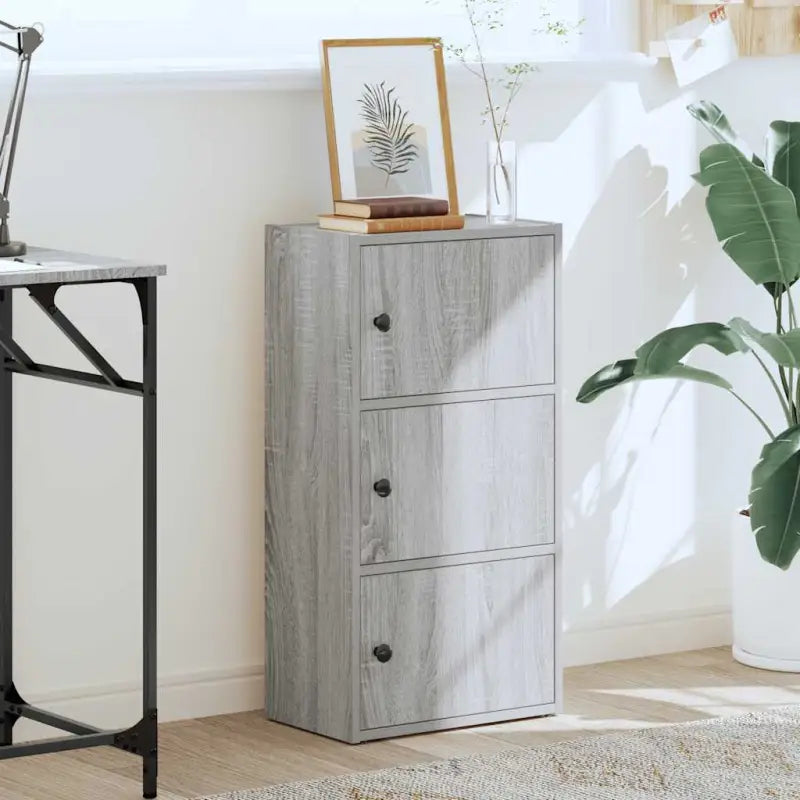Boekenkast van bewerkt hout in grijs sonoma voor een stijlvolle organisatie