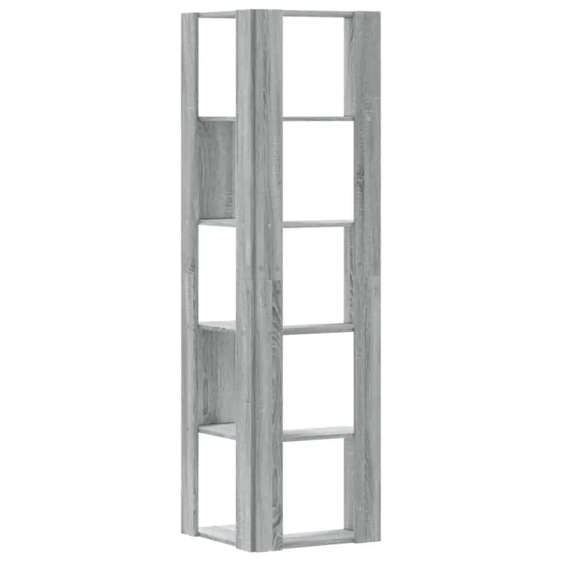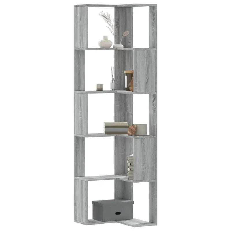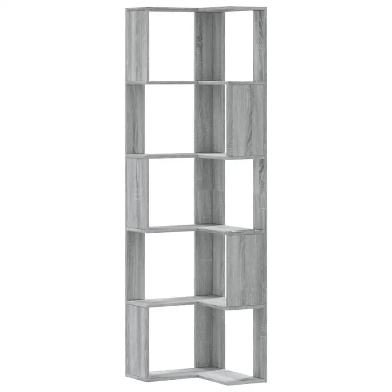 Hoekboekenkast in bewerkt hout grijs Sonoma voor een stijlvolle opbergoplossing