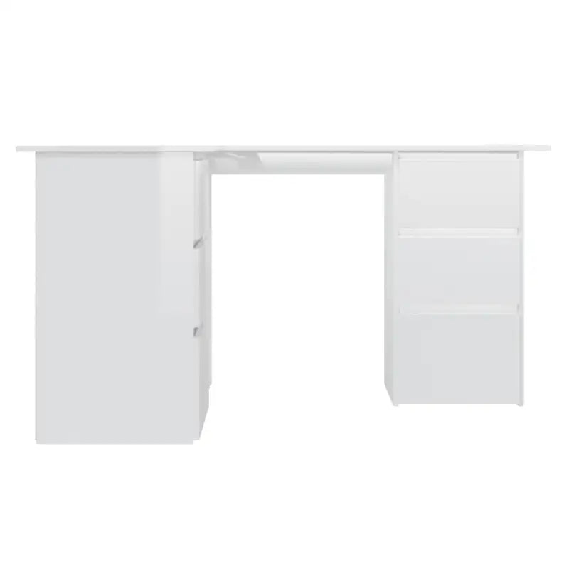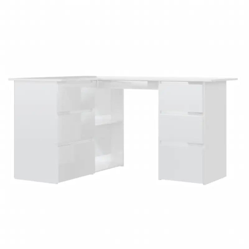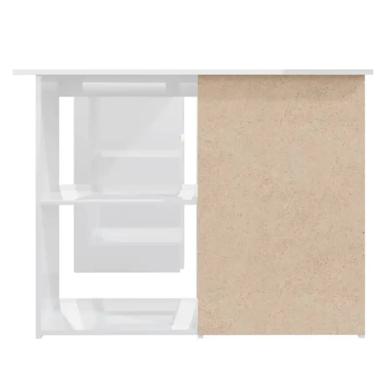 Hoekbureau van hoogglans wit bewerkt hout voor studeer- en werkruimte