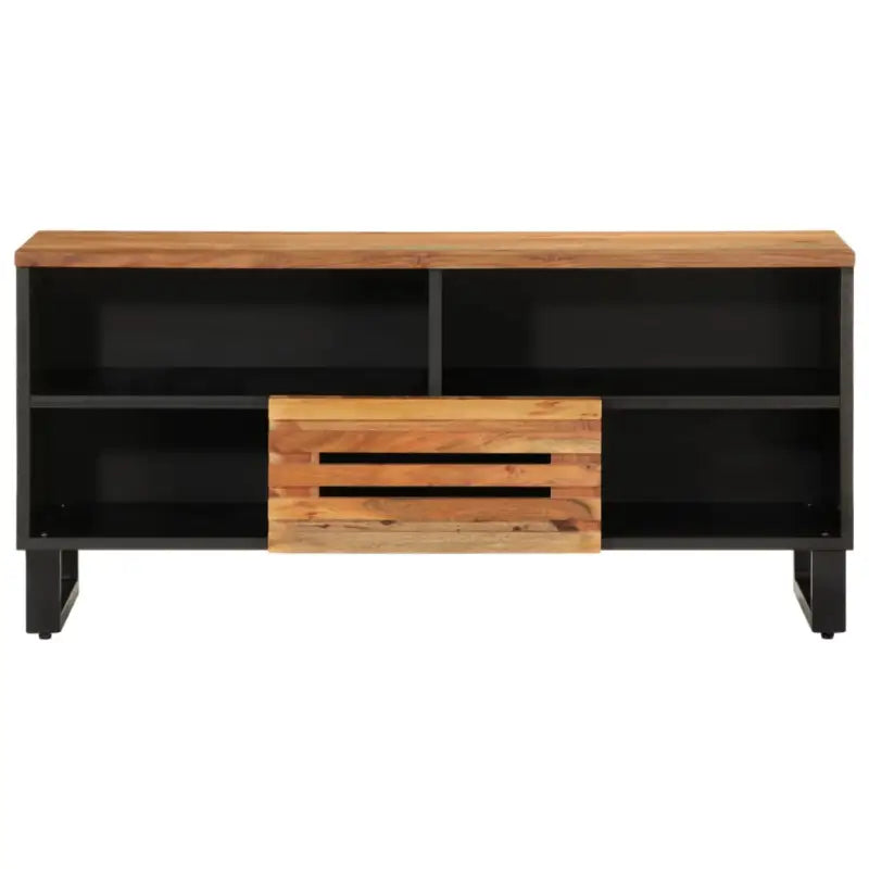 Dit stevige tv-meubel met een industriële stijl is een tijdloze toevoeging aan je woon- of slaapkamer.