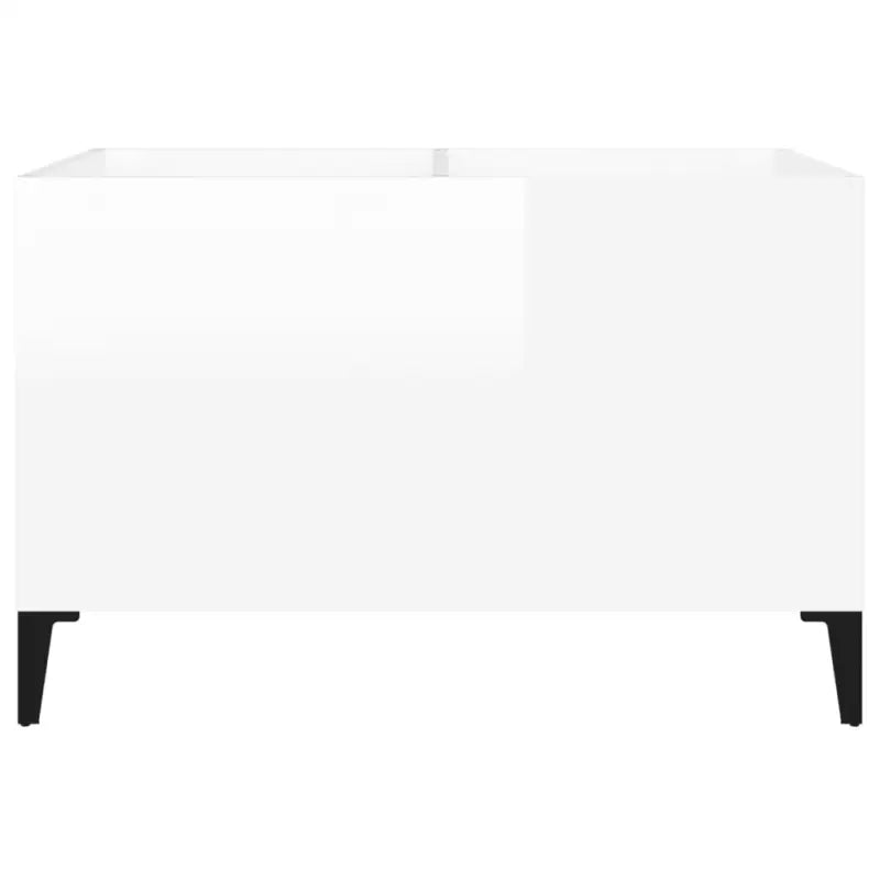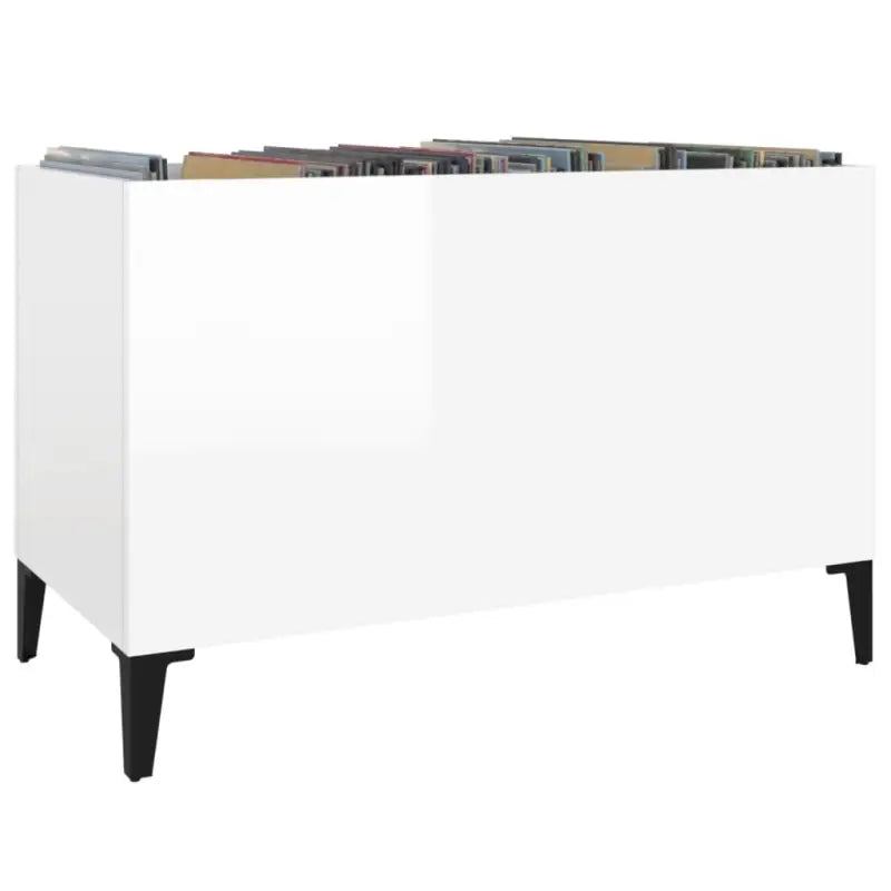 Vinylplatenkast in hoogglans wit met metalen poten en bewerkt hout