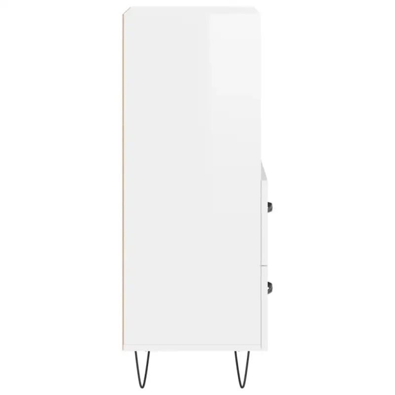 Modern dressoir met metalen poten in hoogglans wit en bewerkt hout