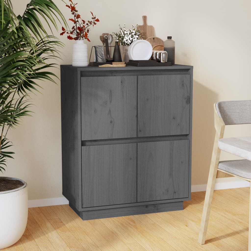 Deze bijzetkast is gemaakt van massief grenenhout en MDF, waardoor hij stabiel en duurzaam is. Dankzij de 4 deuren biedt het meubel voldoende opbergruimte voor je boeken, multimedia-apparaten en andere spullen. Het stevige blad is ideaal voor het plaatsen van decoratieve spullen, zoals fotolijstjes en planten. Dit meubel is voorzien van zweefpoten.