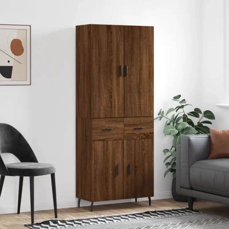 Hoge kast van bewerkt hout met duurzame charme en unieke uitstraling