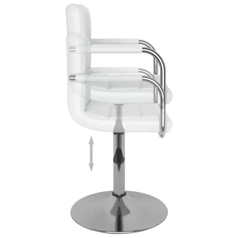 Deze draaistoelen zijn bekleed met eenvoudig te reinigen kunstleer en bieden optimaal zitcomfort. Het verchroomd stalen frame zorgt voor stevigheid. Bovendien kunnen deze stoelen in hoogte versteld worden dankzij het gasveermechanisme. Ze kunnen 360 graden draaien voor grote flexibiliteit en zijn een perfecte aanvulling op elke eethoek.