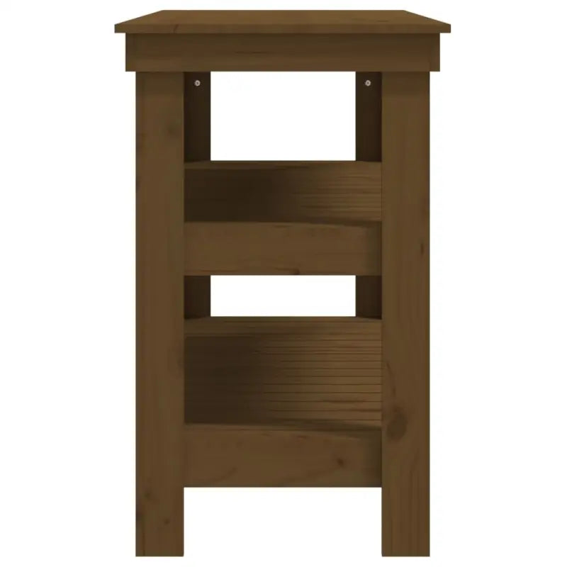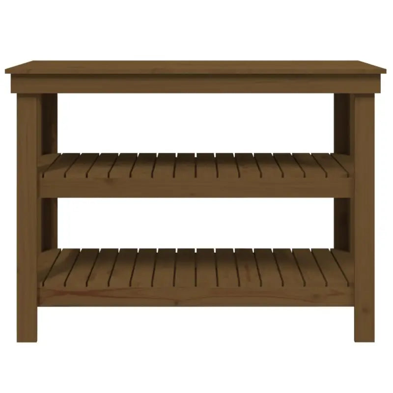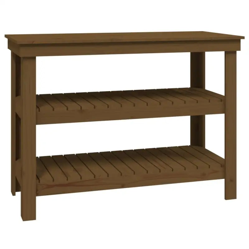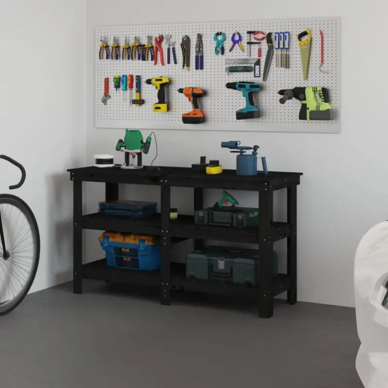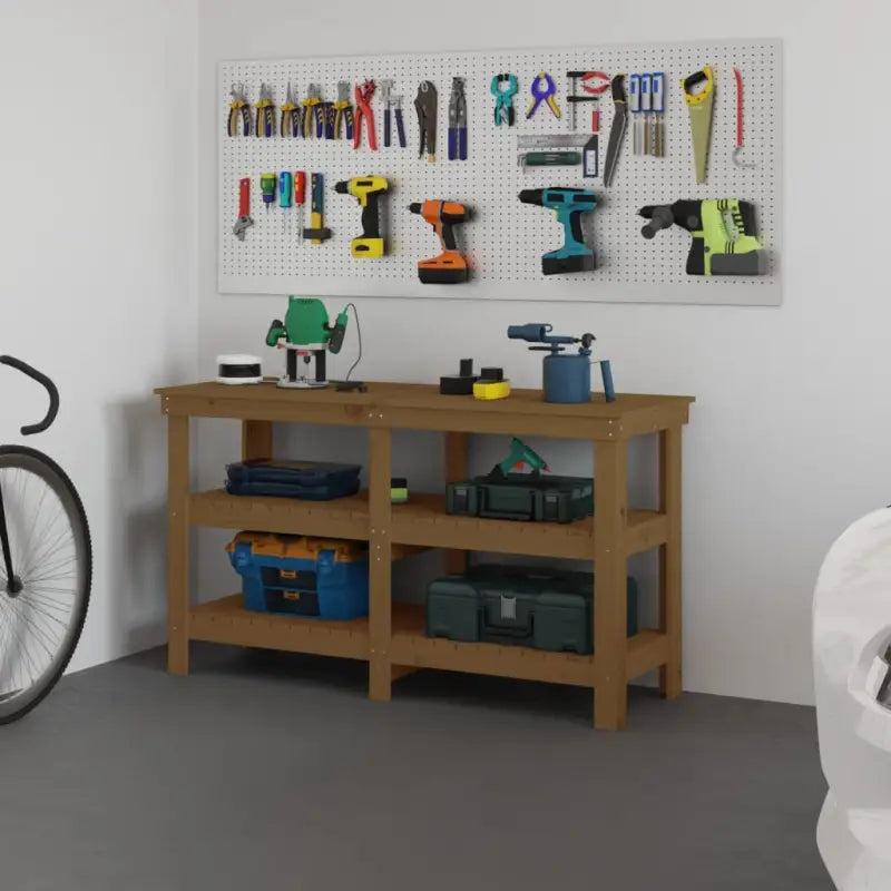 Deze houten werkbank vormt een praktische aanvulling op je woonruimte.