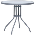 Deze ronde tafel is gemaakt van een gepoedercoat stalen frame, dat stabiel en duurzaam is. Het gezeefdrukt glazen blad voegt extra elegantie toe en is gemakkelijk schoon te maken en te onderhouden. Deze tafel met eigentijds design is de juiste combinatie voor je terras of tuin.