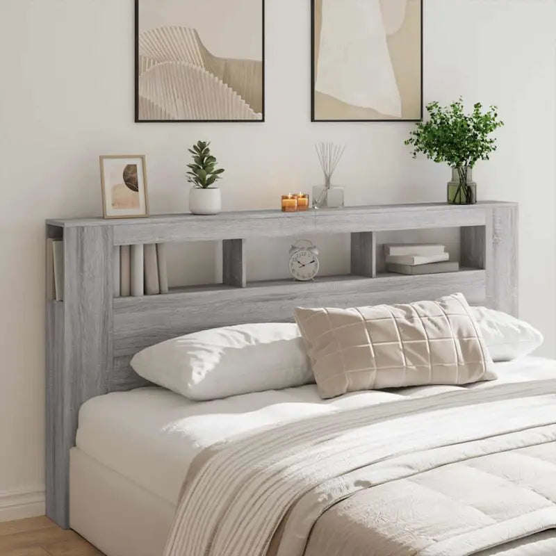 Hoofdbord en voetbord in bewerkt hout grijs Sonoma voor moderne slaapkamers