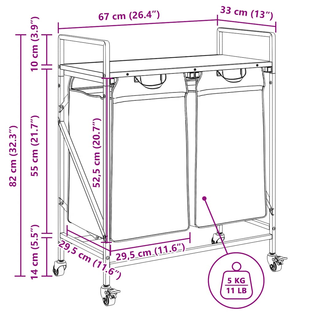 De wasmand biedt een ruime en handige opbergoplossing, met uittrekbare zakken en wielen die het organiseren en vervoeren van uw wasgoed moeiteloos maken.