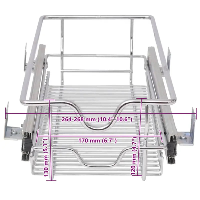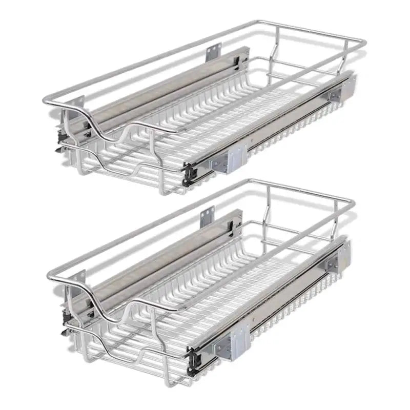 De manden zijn gemaakt van gepolijst verchroomd staaldraad, waardoor ze roestvrij, stevig en duurzaam zijn. Ze zijn ook verwijderbaar voor eenvoudige reiniging.