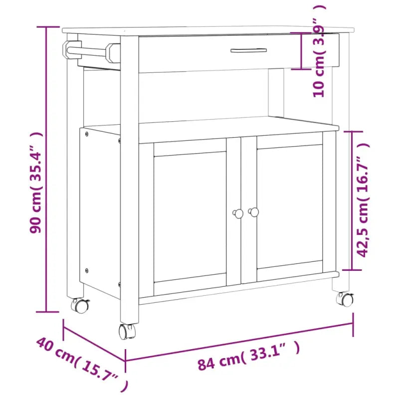 Keukentrolley van massief grenenhout met vintage uitstraling