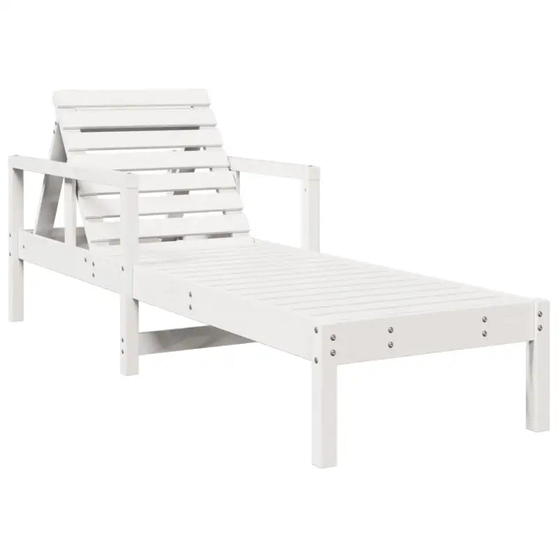 Ligstoel van massief grenenhout met verstelbare rugleuning en gelat ontwerp