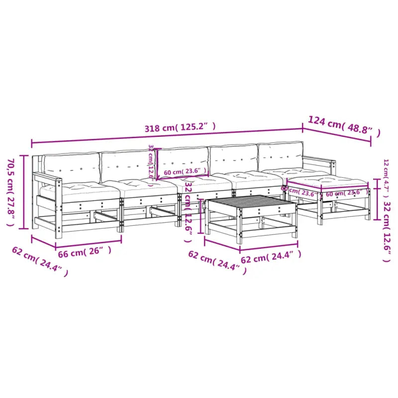 Houten loungeset van massief grenenhout met voetenbank en salontafel