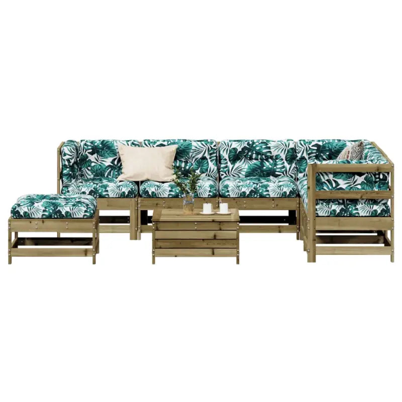 Houten loungeset met gelat ontwerp en modulair ontwerp in geïmpregneerd grenenhout