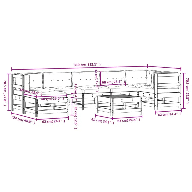 Massief Douglashout loungeset met voetenbank en salontafel voor in de tuin