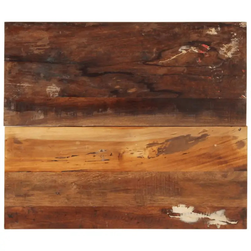 Het vervangende tafelblad is gemaakt van massief tropisch hergebruikt hout, wat bestaat uit hout dat afkomstig is van oude gebouwen zoals magazijnen, schuren, loodsen, molens en huizen. Het hout is een mix van mango, hardhout en teak. Het heeft dus de kenmerken van verschillende houtsoorten. Gebruikssporen en de zichtbare nerfstructuur geven elk tafelblad zijn eigen geschiedenis en een unieke uitstraling. Elke stap van het proces wordt met de meest uitzonderlijke zorg uitgevoerd, of het nu polijsten, schilderen of lakken is. Deze massief houten tafelblad kan worden gebruikt voor salontafels, bijzettafels, bartafels, wandtafels, nachtkastjes, enz. Je kunt dit tafelblad naar wens combineren met poten in elke stijl. Het blad is eenvoudig te reinigen met een vochtige doek.
