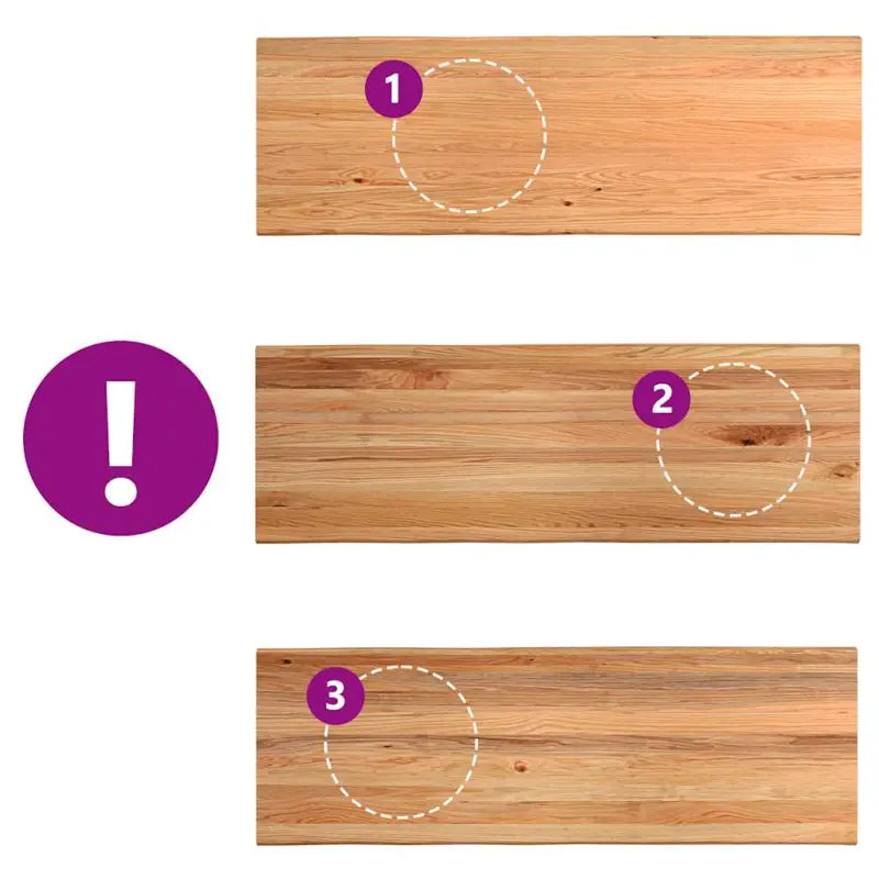 Noesten en kleine gebreken zijn opgevuld met zwart vulmateriaal om een mooi en glad tafeloppervlak te geven. Raadpleeg de afbeeldingen voor voorbeelden.