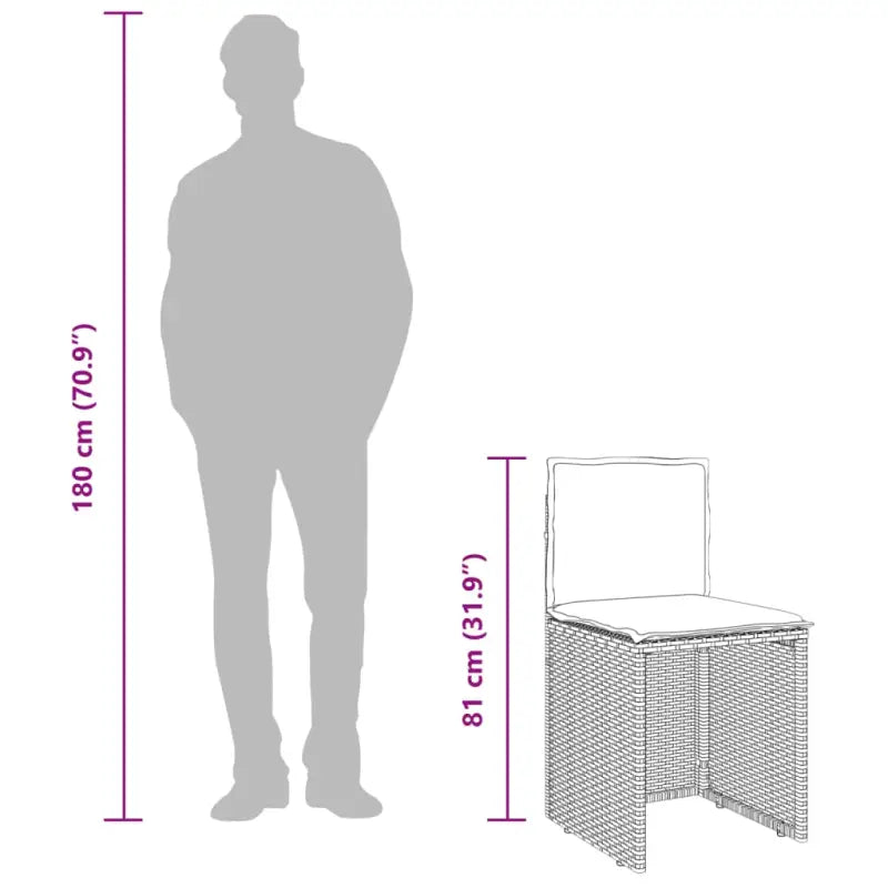 - Compact op te bergen: de tuinstoelen kunnen netjes onder de tafel worden geschoven, waardoor ze ruimtebesparend kunnen worden opgeborgen.