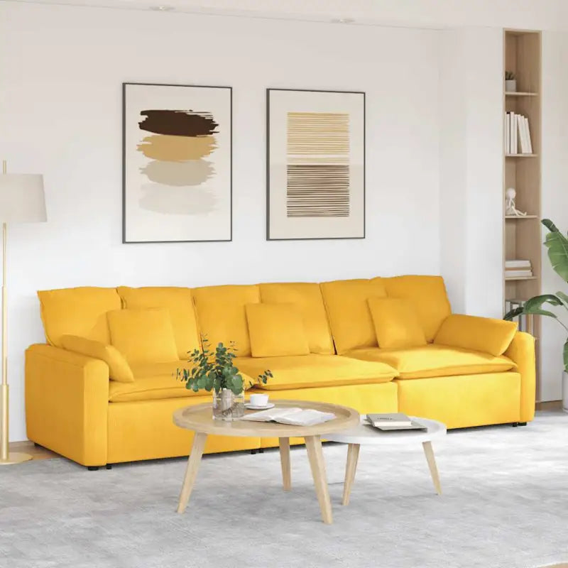 - Royale zitplaatsen: met drie modulaire secties biedt de bank voldoende zitruimte om comfortabel te loungen, waardoor hij ideaal is voor familiebijeenkomsten of het ontvangen van vrienden. Of het nu wordt gebruikt in een gezellige woonkamer of een open ruimte, het ruime ontwerp zorgt ervoor dat iedereen samen kan ontspannen.