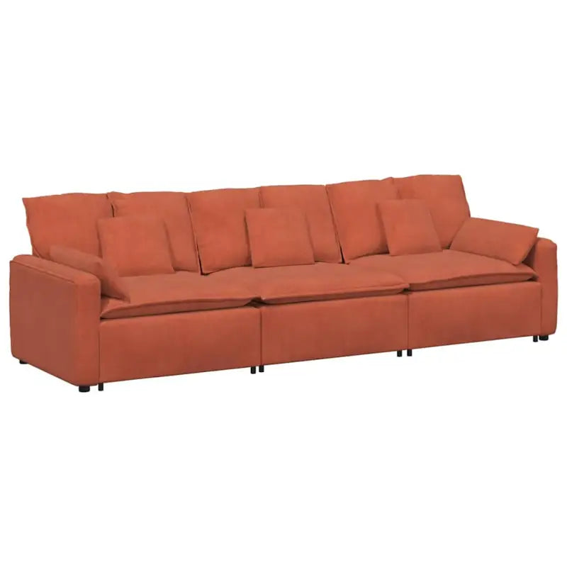 Modulaire bank in rood oranje met totale afmetingen voor elke woonruimte