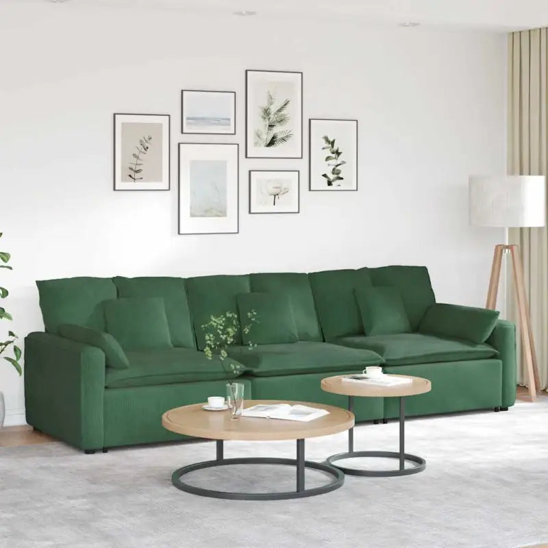 - Modulair ontwerp: De modulaire constructie van de bank zorgt voor een moeiteloze herconfiguratie om in elke kamerindeling te passen. Deze flexibele montage zorgt voor een veelzijdige zitoplossing die perfect past bij uw ruimte en levensstijl.