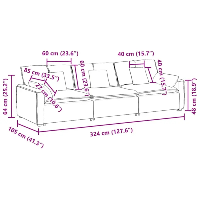 - Royale zitplaatsen: met drie modulaire secties biedt de bank voldoende zitruimte om comfortabel te loungen, waardoor hij ideaal is voor familiebijeenkomsten of het ontvangen van vrienden. Of het nu wordt gebruikt in een gezellige woonkamer of een open ruimte, het ruime ontwerp zorgt ervoor dat iedereen samen kan ontspannen.