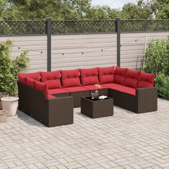 vidaXL 10-delige Loungeset met kussens poly rattan bruin
