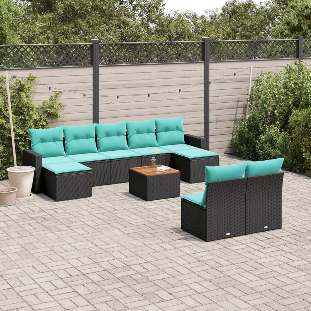 vidaXL 10-delige Loungeset met kussens poly rattan grijs