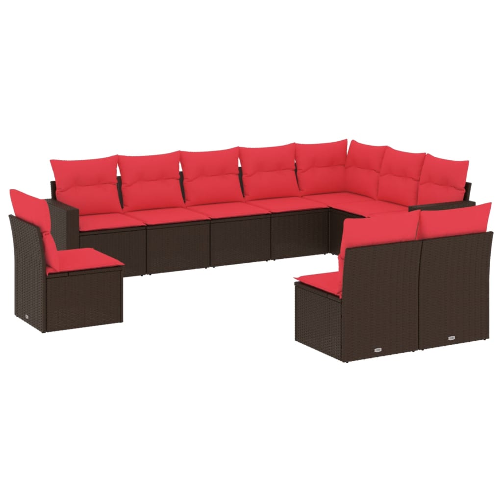 vidaXL 10-delige Loungeset met kussens poly rattan grijs