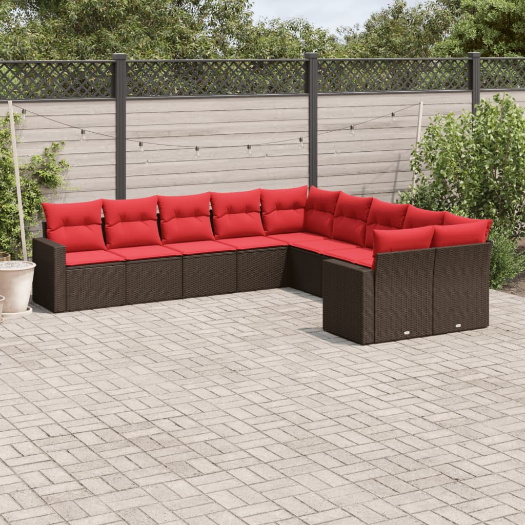 vidaXL 10-delige Loungeset met kussens poly rattan grijs